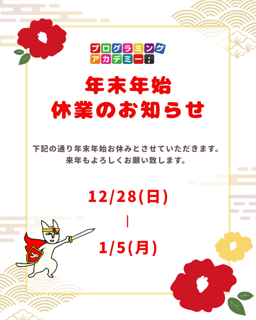 2025年12月28日(日)~2026年1月5日((月))の間、お休みさせていただきます。