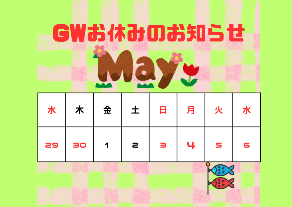 ゴールデンウイークのお休みのお知らせ
